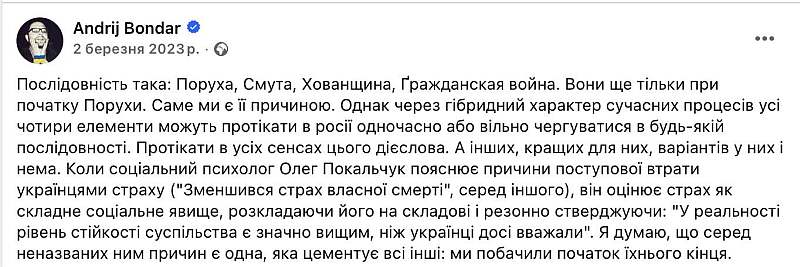 The Khoven riot is the “Streltsy rebellion,” I remind you. Discontent in the army. We are on the brink of it. The Khoven riot looms behind the curtain because the Streltsy lost Musk’s internet at the front and will lose Telegram on April 1. As they like to say: “We are here.”
