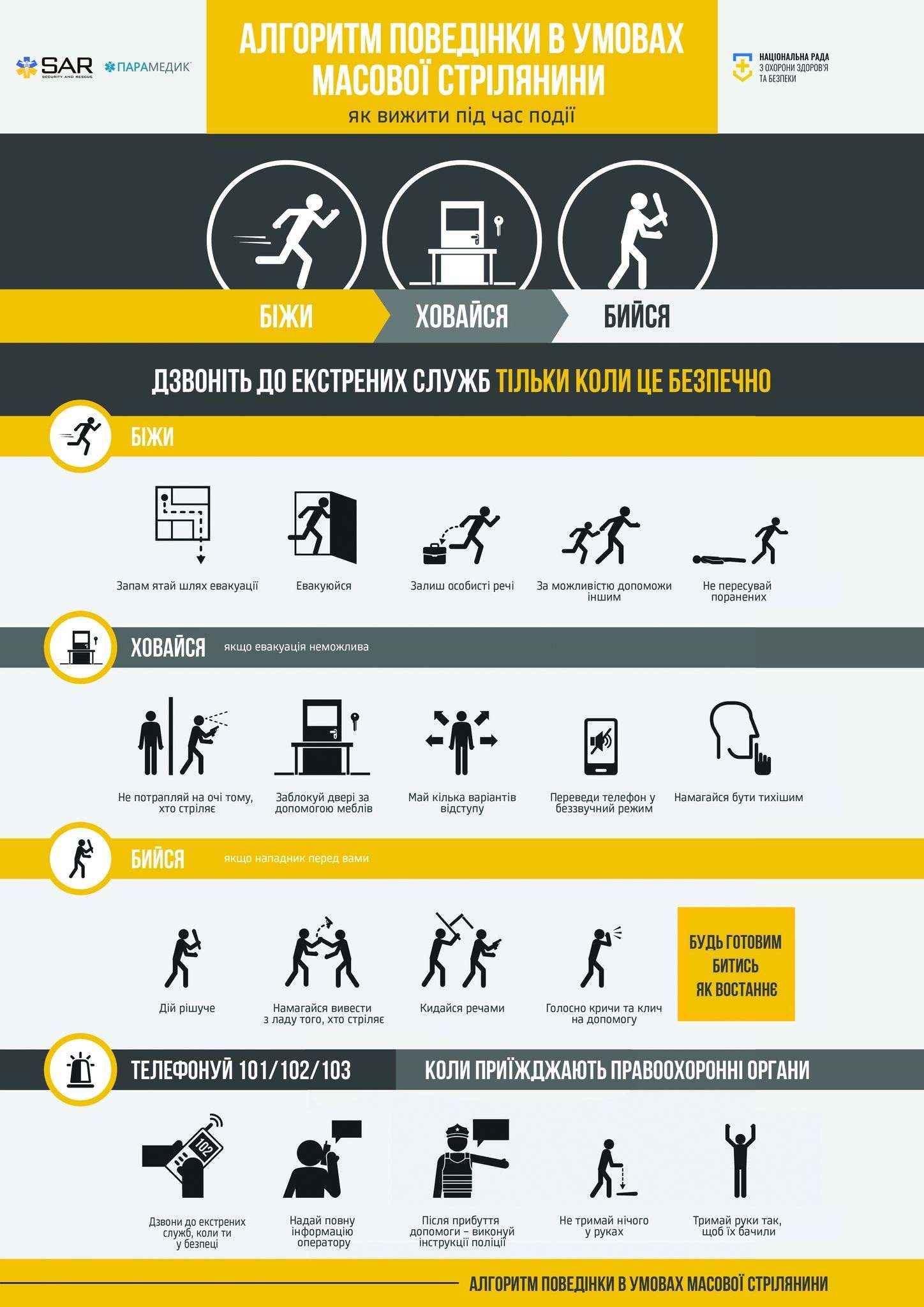 We have prepared a clear algorithm of actions for you on a poster. Spend 2 minutes – save it on your phone, zoom in, read carefully. Show it to your loved ones, family, and dear ones.