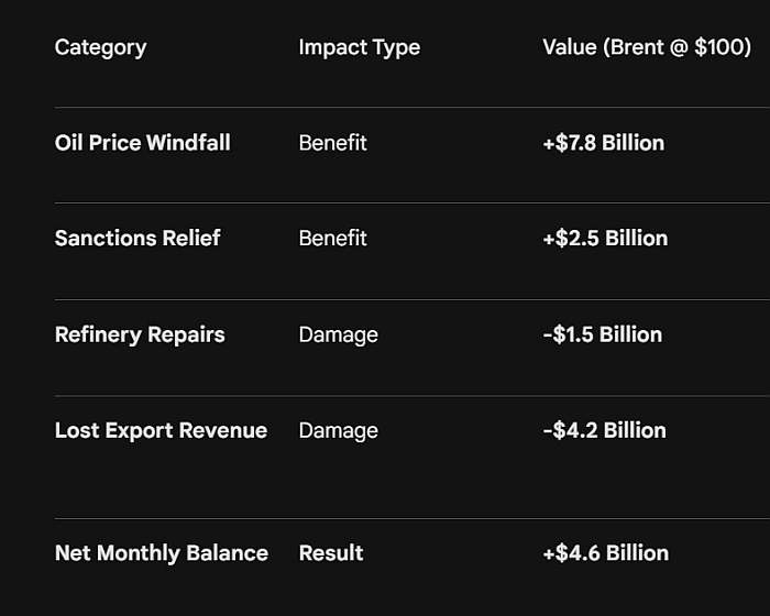 The financial gains from this in early March appeared staggeringly large. According to calculations, in the first two weeks of U.S. bombings, Russia earned almost 7 billion dollars in additional revenue.
