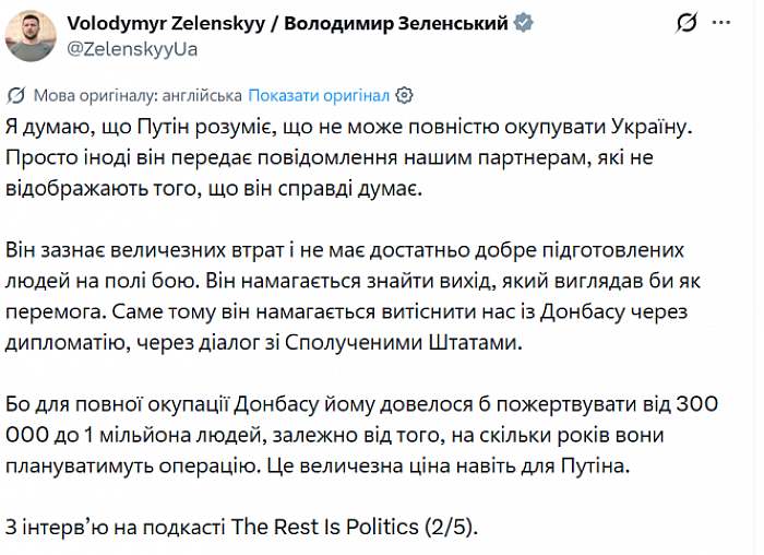 It is good that the Ukrainian people understand the truth, and the Ukrainian leadership speaks the truth. This means they are waging a war as it is, not as they would like it to be.