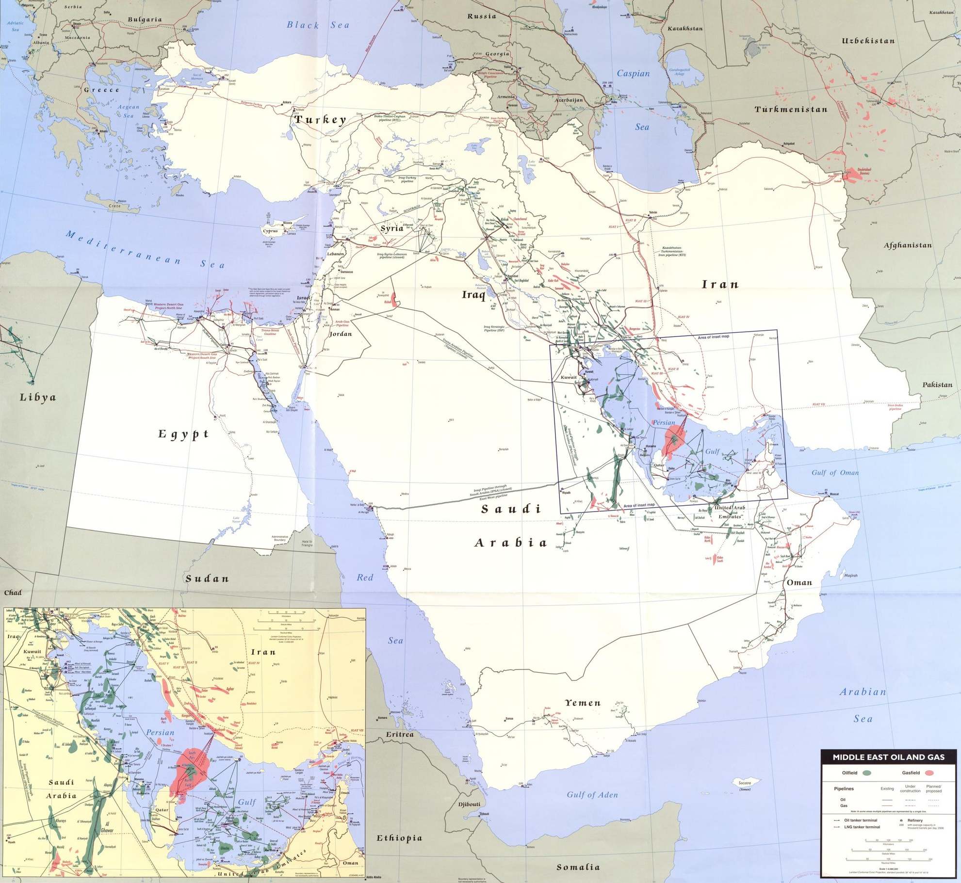 1. The first map is the localization of the main oil and gas fields in the Middle East and Central Asia, highlighting some alternatives. Very clearly: in focus is a strip 300 km wide and 1500 km long, which has stirred the entire planet.
