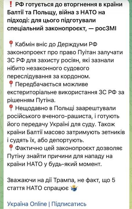 For some reason, the telegram service of the Ukrainian government rushed to spread this garbage with Putin-friendly accents: “Europe was abandoned by the Americans, Putin is preparing an attack, every man for himself!”.